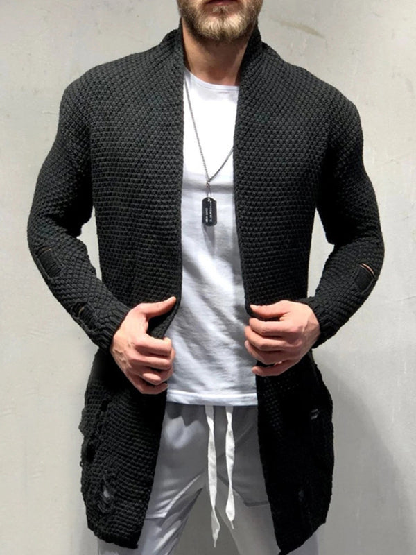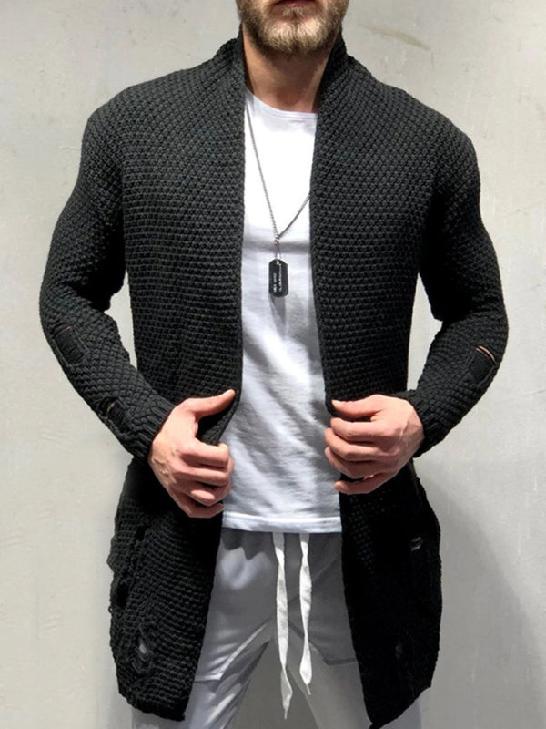 Men's Solid Color Chunky Knit Open Front Cardigan Sweater